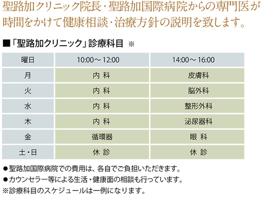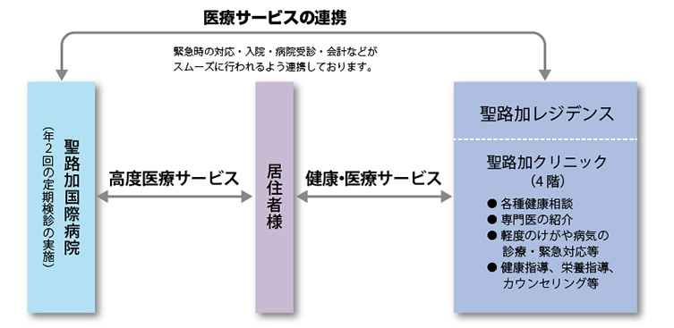 万全のサポート体制の聖路加国際病院、そして適切な医療アドバイスが受けられる「聖路加クリニック」、この2つがすぐそばにある確かな安心。これが、《聖路加レジデンス》ならではの健康医療サービスです。